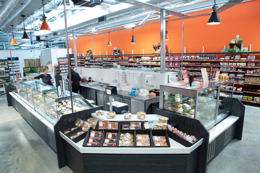 Through to more typical merchandising counters with open shelving, and serve-overs and self-serves display chilled zones.